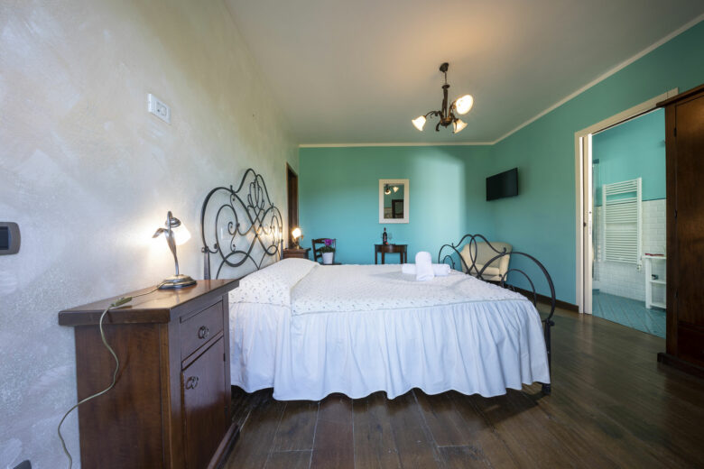 From its windows, guests can admire a romantic view of the surrounding hills, immersing themselves in the peace and beauty of the Tuscan countryside. The room is equipped with satellite TV, air conditioning, and heating, ensuring a pleasant and relaxing stay in every season.