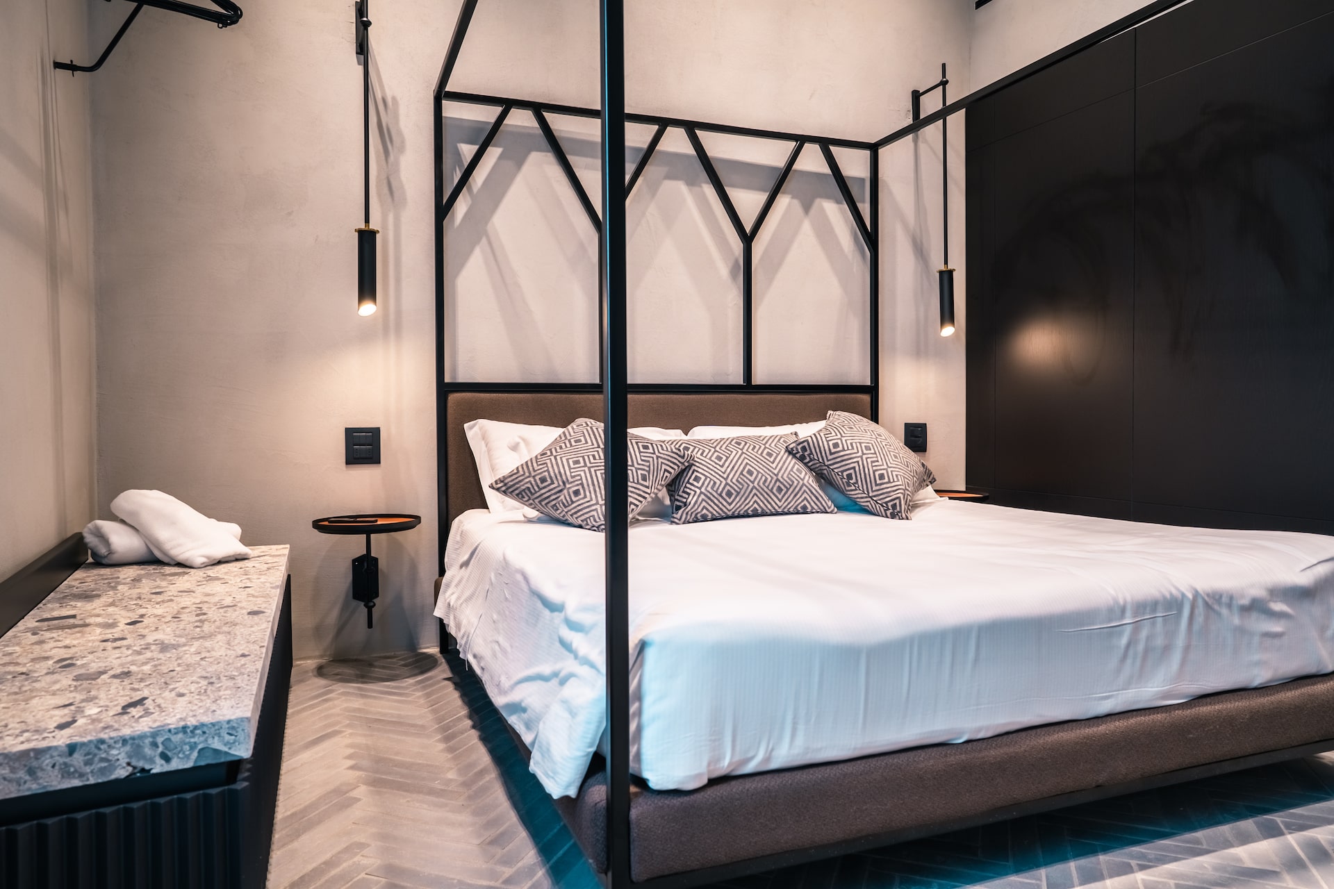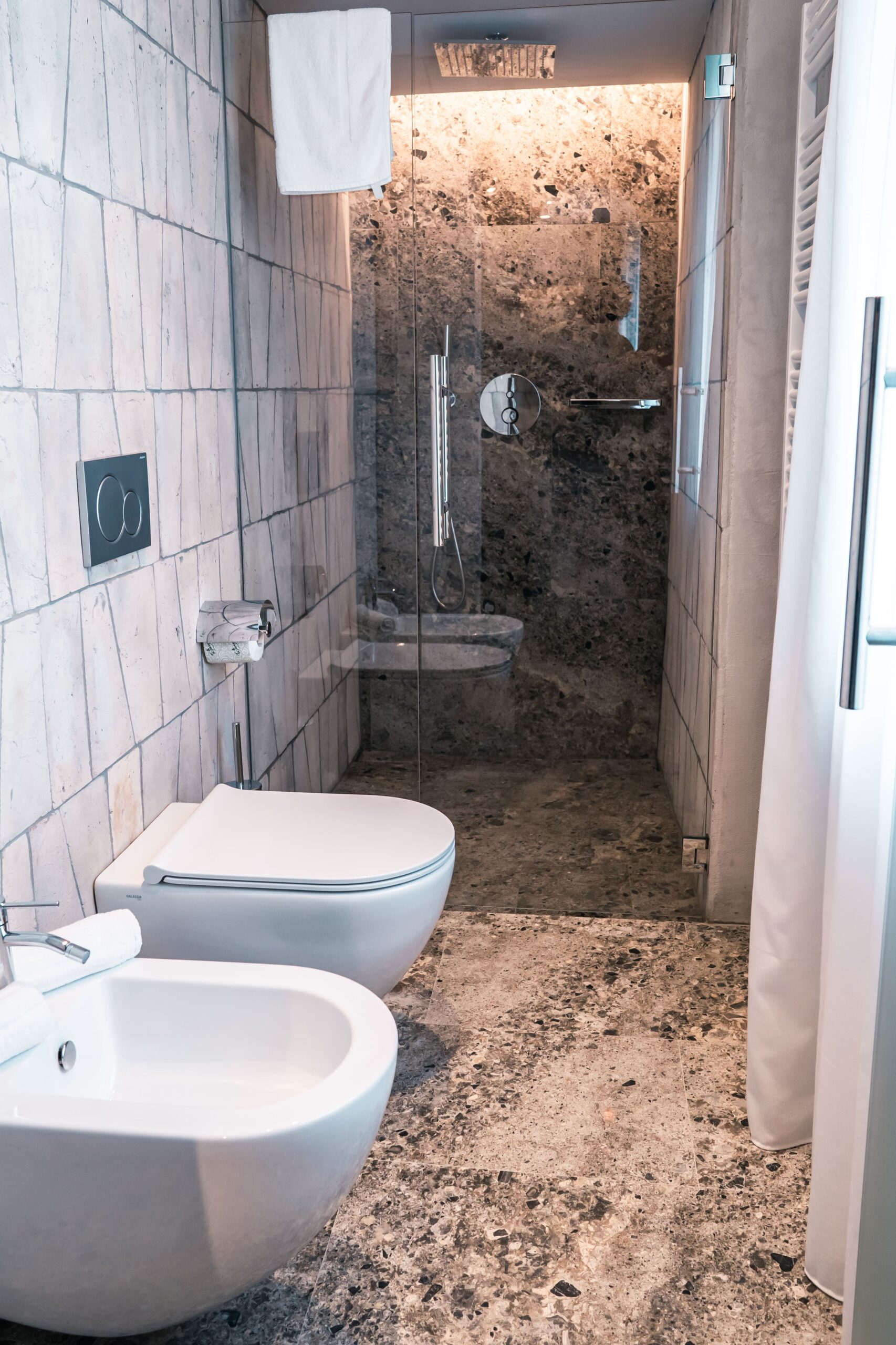 Located on the first floor with a private entrance, Suite Il Fattore was once part of the farm manager’s residence and now offers a refined luxury retreat in San Gimignano. The suite features a living room with a hideaway kitchenette and a double bedroom with an en-suite bathroom, complete with a large multi-sensory, colour therapy shower, combining Tuscan heritage with modern comfort.