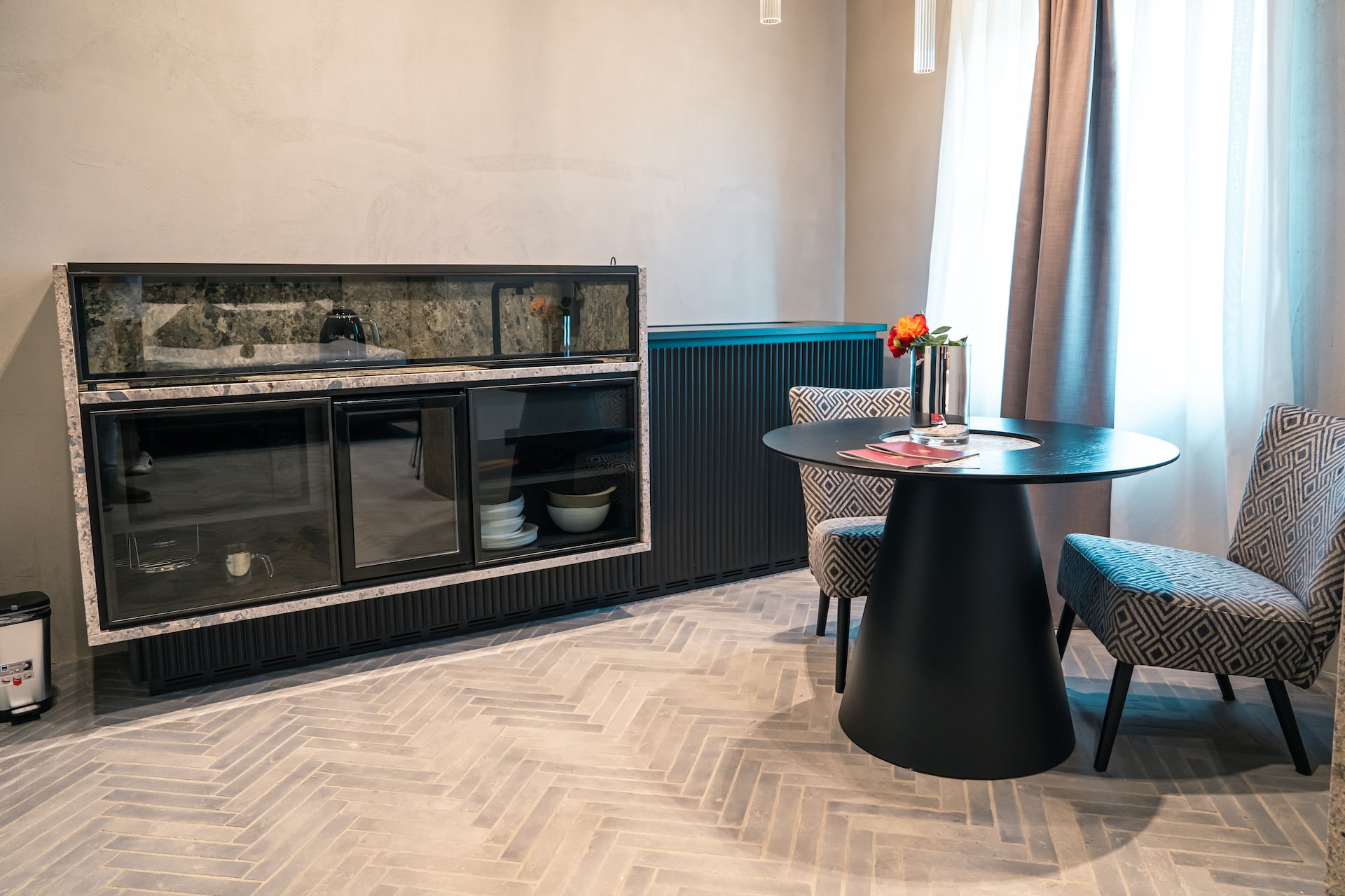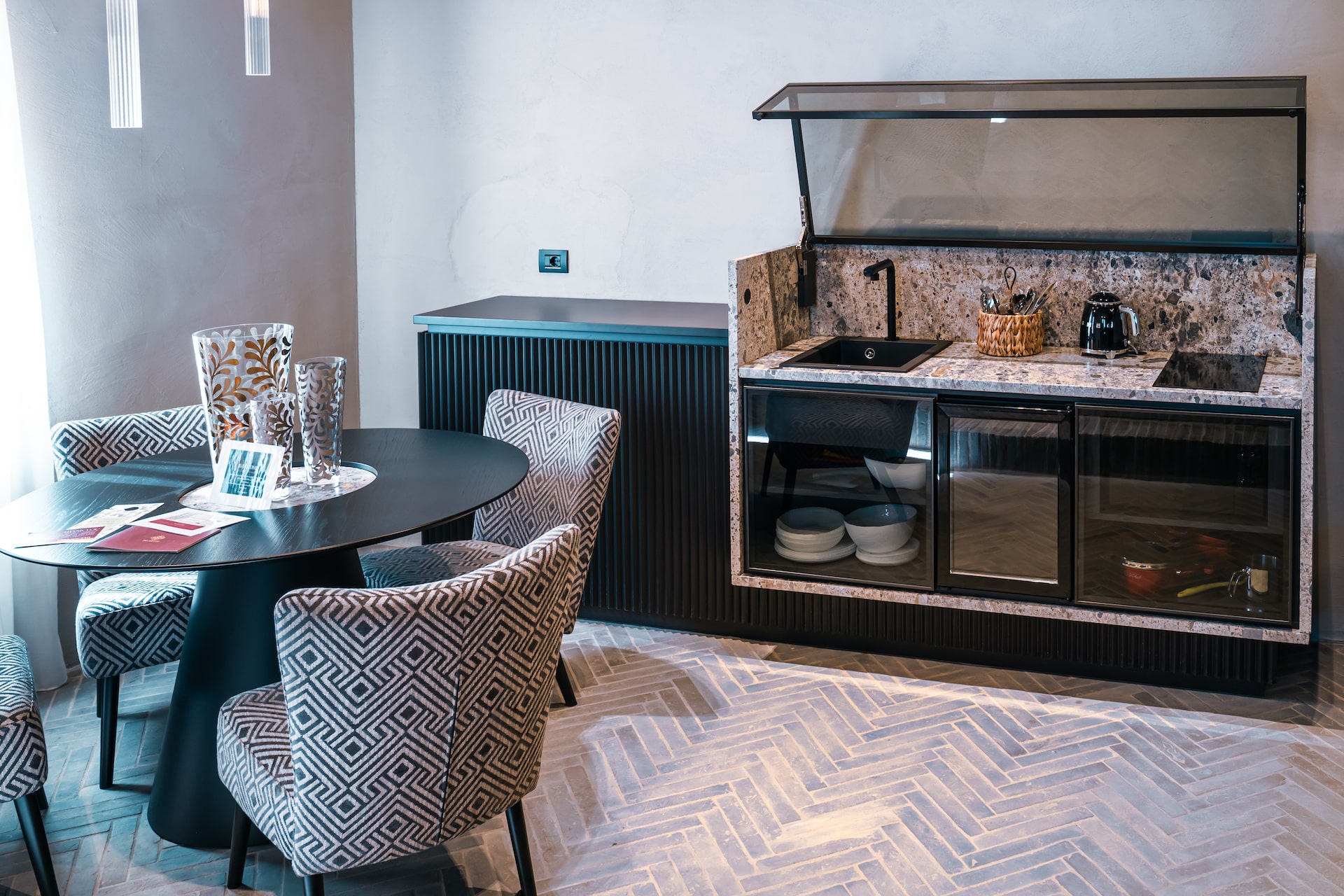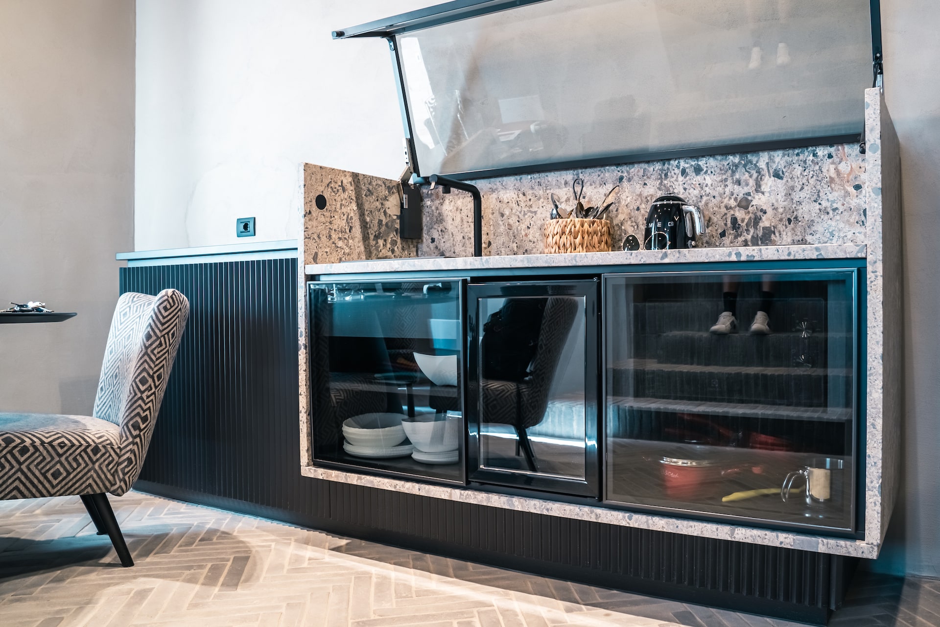 Living room with hideaway kitchenette
