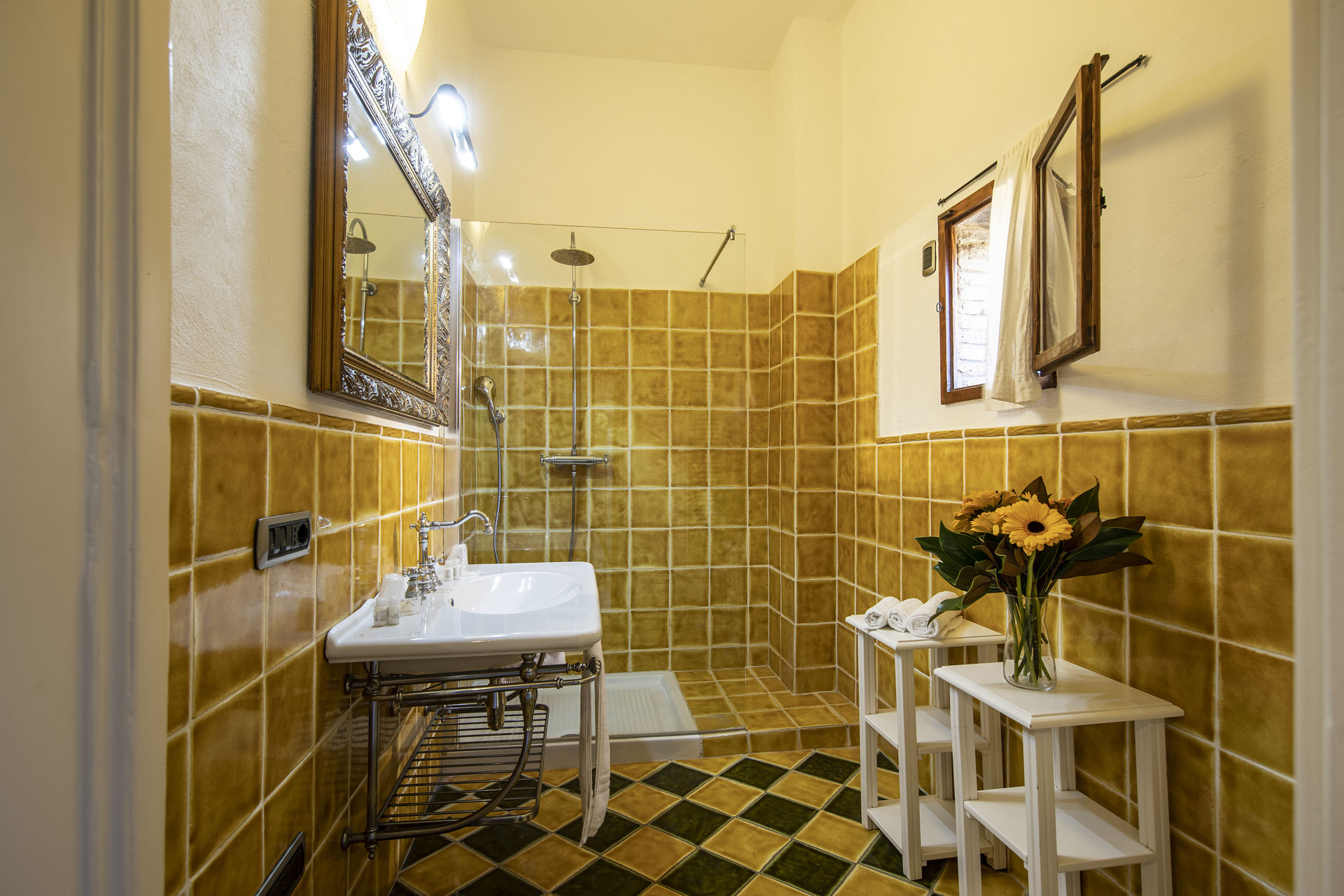 Once devoted to ageing the estate’s precious Vinsanto, the Syrah Room is a spacious and elegant ground-floor retreat that perfectly blends Tuscan heritage with modern comfort. Featuring wooden flooring, a private en-suite bathroom with shower, and panoramic countryside views, this room captures the timeless charm of San Gimignano.